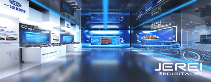 由捷瑞數(shù)字研發(fā)的數(shù)字中心所研發(fā)的一汽解放數(shù)字中心的成功打造,不僅為企業(yè)帶來了顯著的品牌傳播效應(yīng)和市場拓展效果,也為整個行業(yè)樹立了數(shù)字化展廳建設(shè)的典范。它以其獨特的設(shè)計風(fēng)格、先進的技術(shù)應(yīng)用和人性化的服務(wù)理念,為參觀者帶來了一場視覺與心靈的盛宴,讓人們深刻感受到了數(shù)字化時代企業(yè)的創(chuàng)新活力和無限可能。通過先進的技術(shù)應(yīng)用、豐富的內(nèi)容展示、獨特的設(shè)計理念和互動體驗,為參觀者帶來了全新的數(shù)字展廳體驗,同時也為一汽解放的品牌傳播和市場拓展提供了有力支持。
